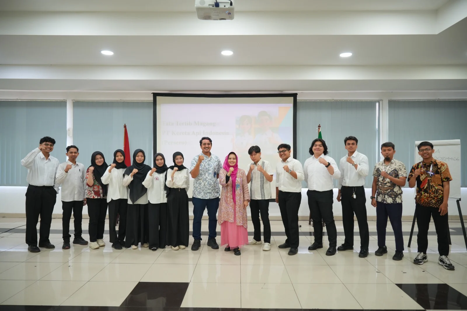 “Kami akan mendampingi adik-adik magang memahami bisnis proses di KAI dengan kemampuan Teknis dan Culture yang dibangun. Etika kerja, tanggung jawab, dan karakter yang kokoh adalah fondasi dari setiap perjalanan karier. Karena itu, kami menanamkan nilai Amanah, Kompeten, Harmonis, Loyal, Adaptif, dan Kolaboratif sebagai budaya kerja yang hidup di KAI,” tambahnya.