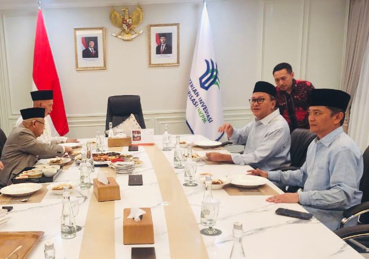 Jakarta | economicnews.id – Menteri Investasi dan Hilirisasi/BKPM, Rosan Roeslani menerima kunjungan Wakil Presiden RI 2019-2024 Prof. Dr. KH. Ma’ruf Amin di Gedung Kementerian BKPM, Jakarta, Jumat, (22/8/25) siang hari ini. Momen pertemuan dua tokoh besar bangsa ini diawali dengan ibadah sholat Jum’at bersama di Masjid Al-Ihsan BKPM.